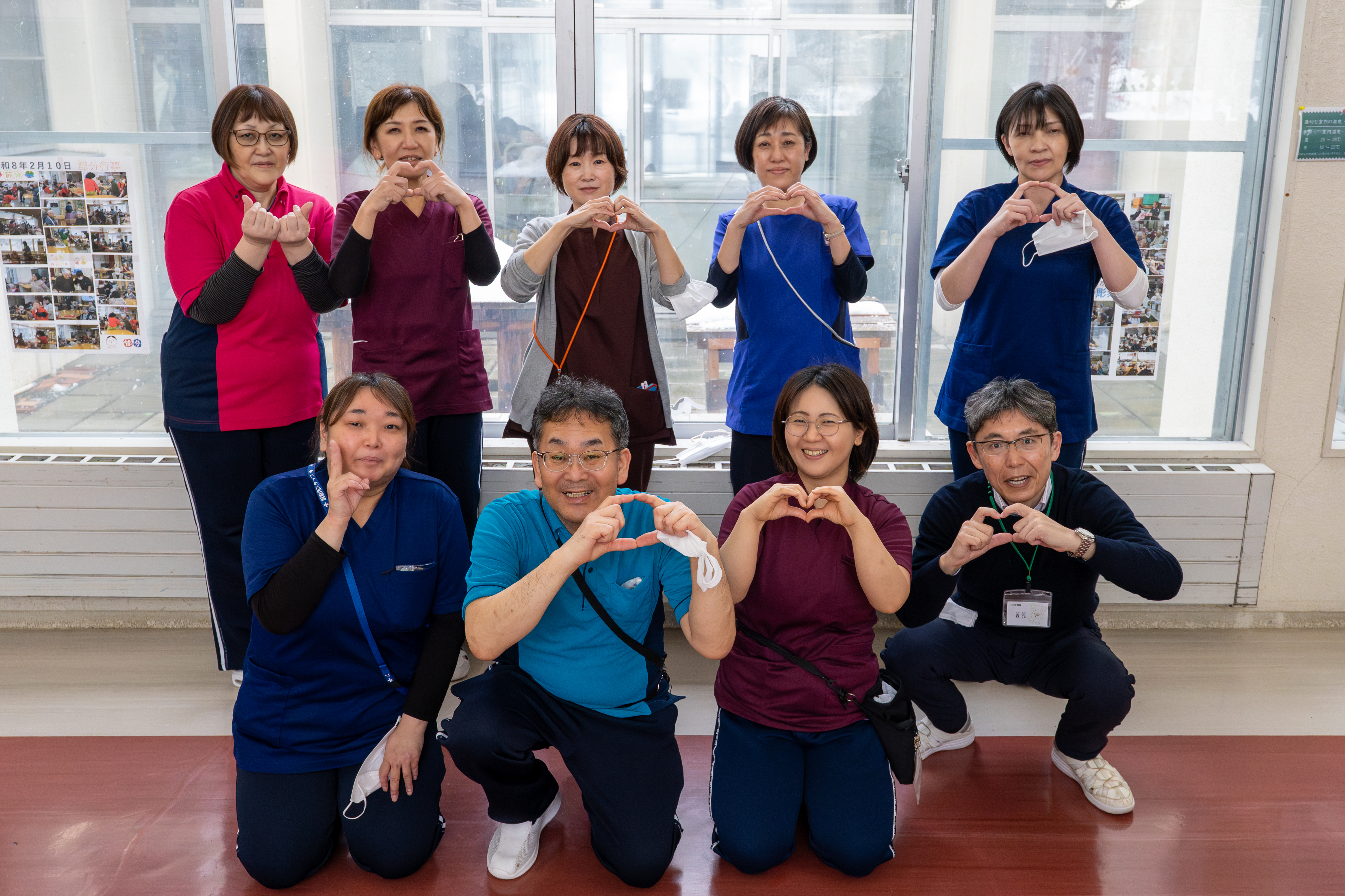 当施設は、昭和58年に開設された町立の介護老人福祉施設です。定員は56人(短期入所9人)で、本体施設である下川町立特別養護老人ホーム「あけぼの園」には、デイサービスセンターや生活支援ハウスが併設されており、状況に応じて職員相互の応援等の業務の連携を図っています。働いている職種は様々で、介護、看護、調理、事務、夜警員などにより施設の運営を行っています。仕事内容